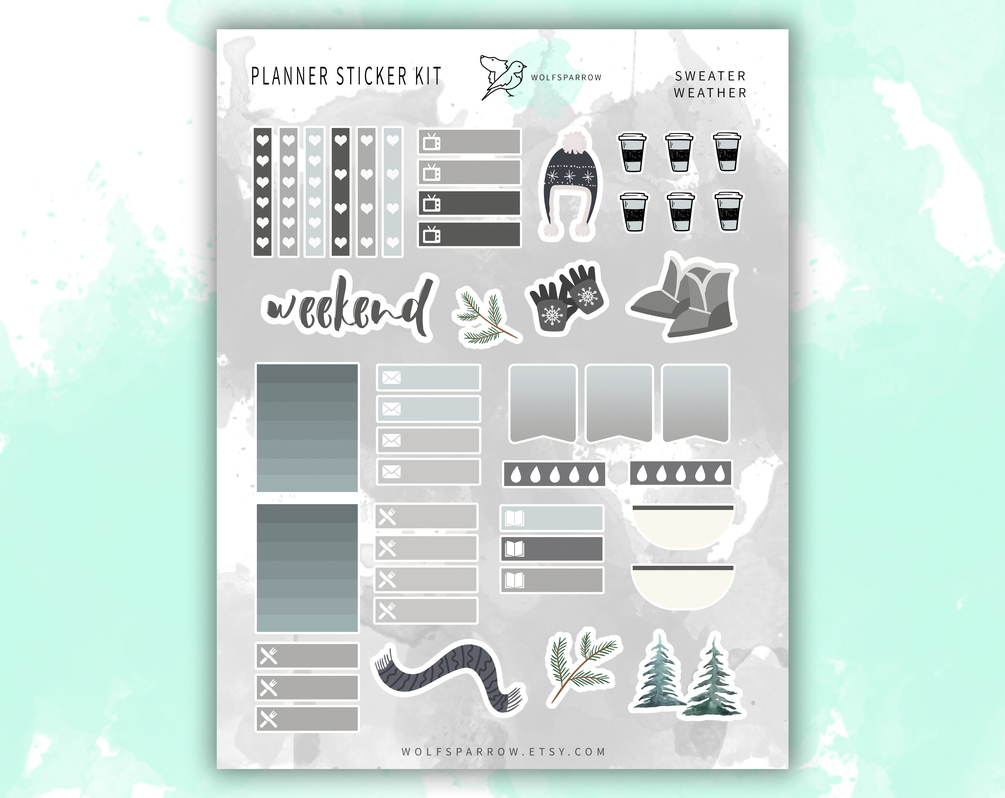 8.5" x 11" (US Letter) PDF file of winter hygge seasonal planner stickers. They are sized for Erin Condren planners, but also work for Happy Planner Classic, Passion Planner, and Law of Attraction planners.